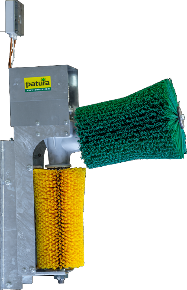 Elektrische Kuhbürsten sind aus den meisten Ställen nicht mehr wegzudenken. Egal ob für Milch- oder Mutterkühe, eine elektrische Kuhbürste steigert im Handumdrehen den Tierkomfort in Ihrem Stall. Die Rinder haben die Möglichkeit, die Bürste im Laufstall jederzeit zu nutzen und dank einer durchdachten Montage ist die Bürste schnell im Einsatz. Alle Bürsten werden für die Tiere frei zugänglich montiert, sodass die Tiere jederzeit selbst entscheiden können, wann sie in den Genuss der Kuhbürste kommen möchten. Durch Anheben oder Anstoßen der Bürste, wird diese durch die Kuh selbst aktiviert und die Fellpflege kann starten.