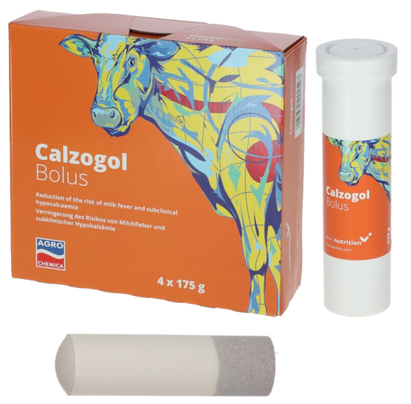 - sehr hohe Gehalte an schnell und langsam verfügbarem Kalzium (45 g) und Vitamin D3 (40.000 I.E.) pro Bolus!