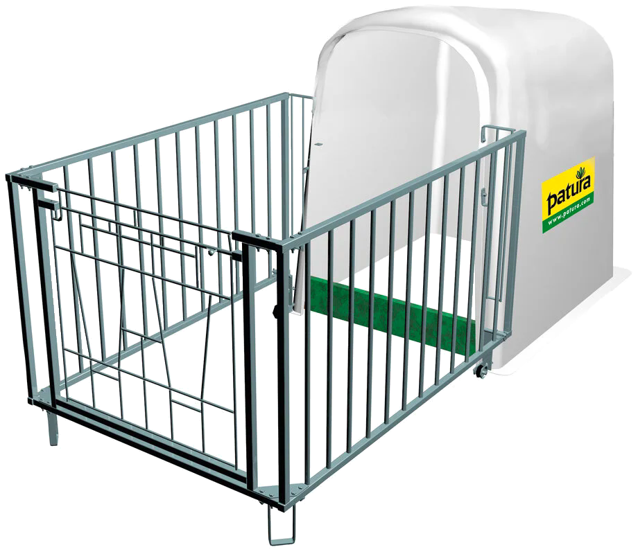 Bei der Reinigung des Auslaufgitters kippen Sie einfach das Gitter über die Hütte. Das Kalb verbleibt so im Inneren des Iglus. Das Frontgitter lässt sich über solide Räder leicht bewegen. Über das Anbringen von Eimerringen an der Front kann dem Kalb gleichzeitig Milch, Kraftfutter und Wasser zur Verfügung gestellt werden.