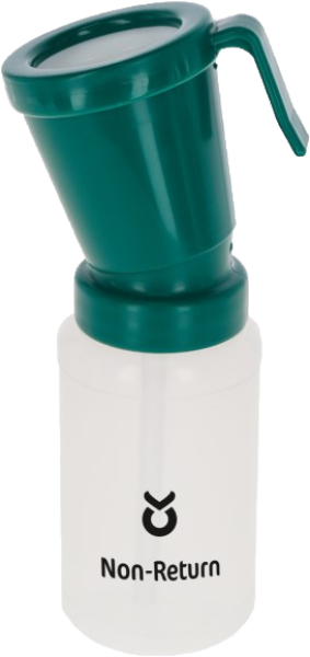 Eine Rücklaufsperre im Inneren des Aufsatzes verhindert, dass gebrauchtes Dippmittel in den Vorratsbehälter zurückläuft - hygienisch, praktisch, sicher!