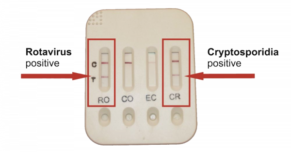 Wenn Sie wissen wollen, ob Ihr Kalb an E.coli, Rota-, Coronaviren oder Kryptosporidien leidet, schafft der Test sofort Klarheit.