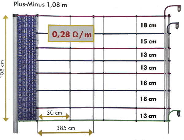 - Höhe: 1,08 m = 14 Pfähle mit Einzelspitze, Widerstand 0,28 Ohm / m
