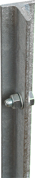 Der Erdstab aus feuerverzinkten T-Winkeleisen ist mit einer Edelstahlschraube für den Anschluss des Erdkabels versehen. Nur bei guter Erdung bringt das Weidezaungerät die volle Schlagstärke auf den E-Zaun.