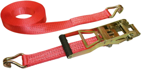 Ergebnis: Die gleiche Ladung kann mit erheblich weniger Zurrgurten gesichert werden mit Zugratschen-Spannelement („Ziehen statt Drücken“)