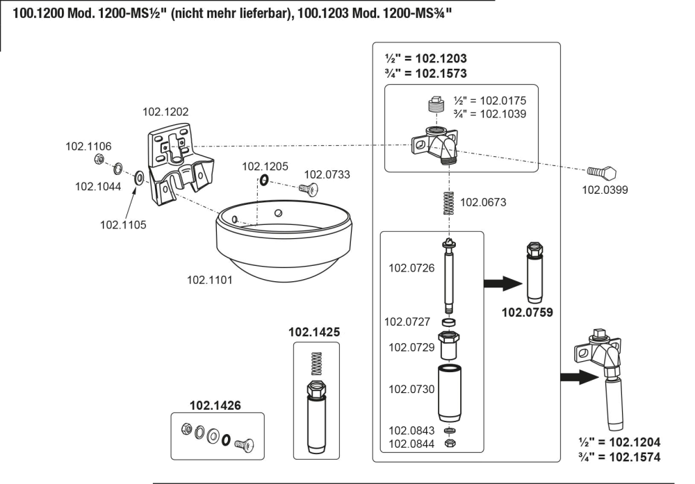 Ersatzteile für Mod. 1200-MS½" und 1200-MS¾"