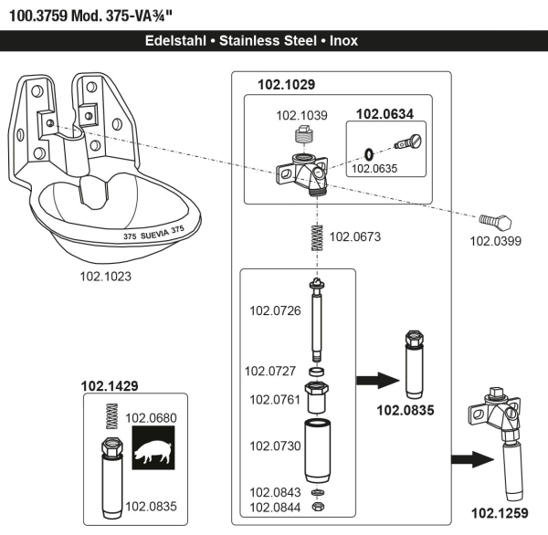 Ersatzteile Mod. 375-VA (Edelstahl) 3/4"