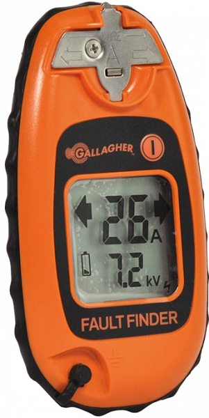 Der Fault Finder (SmartFix) ist ein Fehlersuchgerät (Volt- und Ampere-Messgerät) von Gallagher. Mit diesem Gerät messen Sie die Spannung auf Ihrem Zaun und können Sie Störungen schnell finden und beheben. Der Pfeil auf dem Display zeigt in die Richtung, in der sich der Kurzschluss befindet. Dies bedeutet also Zeitgewinn bei der Suche nach dem Problem.