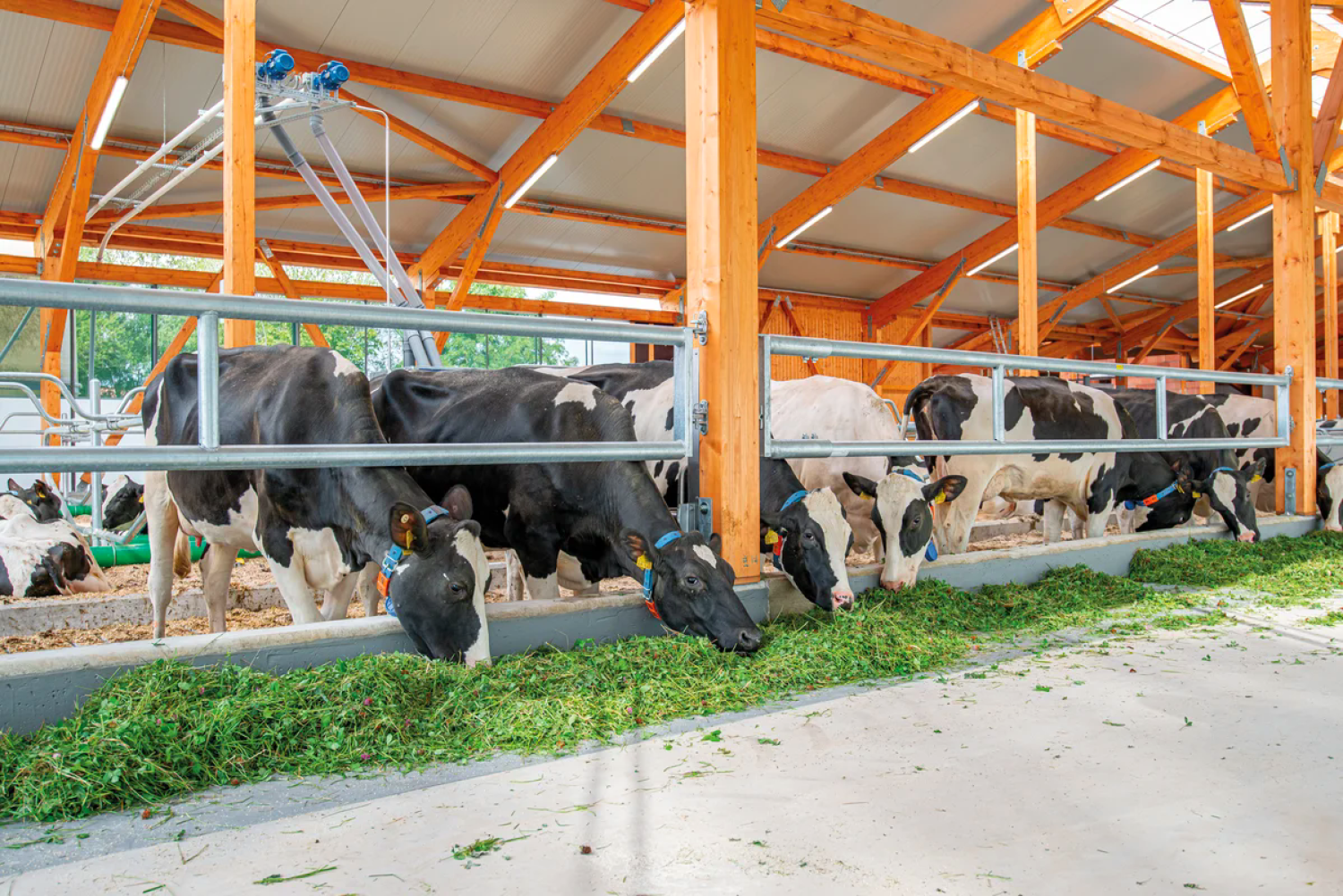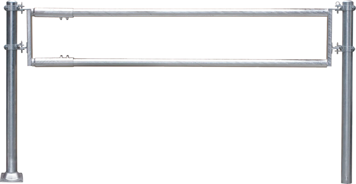 Bei der 2-rohrigen Futtertischabtrennung fressen die Tiere unter dem unteren Rohr hindurch, daher ist unbedingt eine Futtertischwand erforderlich