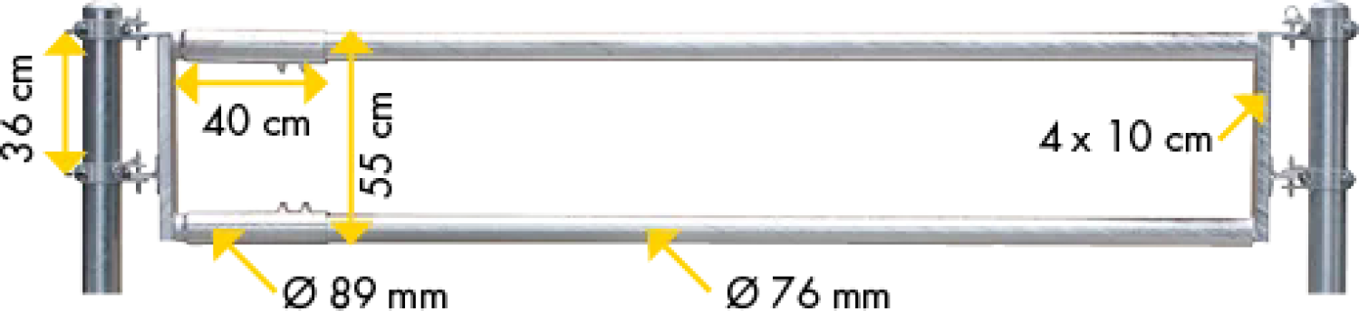 - Hinweis: Die Tiere fressen unter dem unteren Rohr hindurch; es ist unbedingt eine Futtertischwand erforderlich