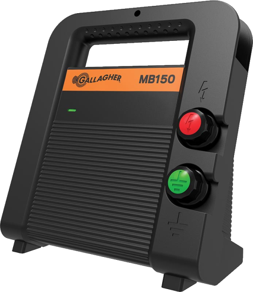 Das MB150 ist ein Multi-Power-Weidezaungerät, das sowohl mit 230-V als auch mit einem 12-V-Akku betrieben werden kann. Das Gerät ist aufgrund seines einzigartigen Designs leicht zu transportieren. Die LED zeigt den Status der angeschlossenen Batterie an. Das Gerät kann Zäune bis zu einer Länge von 15 km versorgen und wird mit den benötigten Anschlusskabeln geliefert. Optional ist ein 230 V/ 15 V Netzadapter erhältlich (Art. 401218).