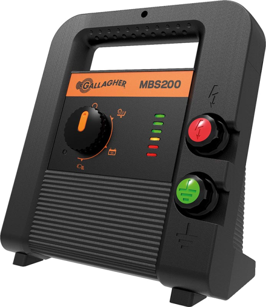 Das MBS200 ist ein 3-in-1 Multi-Power Weidezaungerät. Geeignet für den Einsatz mit einem Solarmodul, einer 12-V-Batterie oder mit 230-V-Netzstromversorgung. Das Gerät lässt sich leicht transportieren und eignet sich für Zäune bis zu einer Länge von 20 km. Es verfügt über ein in der Praxis bewährtes Design mit Batterieüberwachung und eingebautem Blitzschutz. Einschließlich der benötigten Anschlusskabel