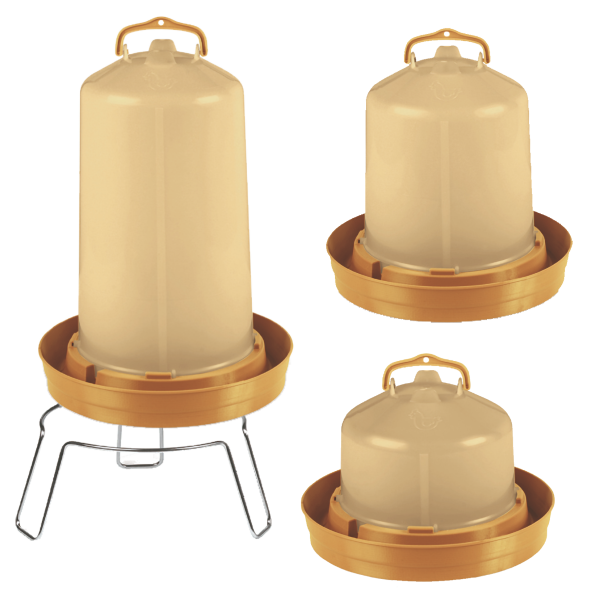 Die Geflügeltränke Premium hatt einen Schraubverschluss zum einfachen Nachfüllen und einen Bajonettverschluss zum leichten Reinigen. Der Untersetzter ist bei allen 3 Größen passend.