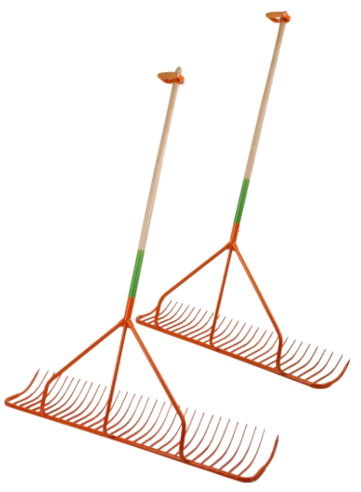 Die Handschlepprechen haben auswechselbare Außenzinken und einen Stiel mit Ziehgriff.