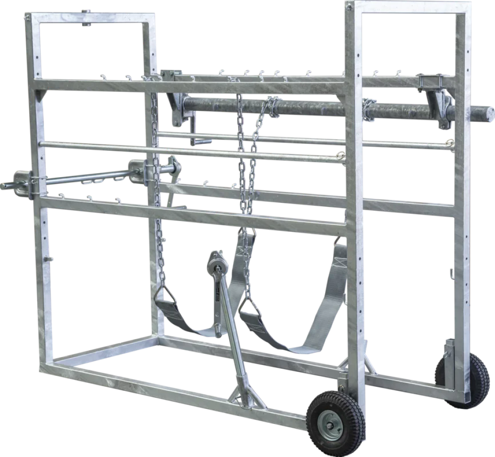 Der preisgünstige Überschiebestand für kleinere bis mittlere Milchviehbetriebe wird ohne Boden, aber mit Fahrwerk geliefert und eignet sich für die Klauenpflege am Anbindeplatz, am Selbstfang-Fressgitter bzw. in der Liegebox. Er ist komfortabel mit 3 selbsthemmenden, rückschlagfreien Winden ausgestattet.