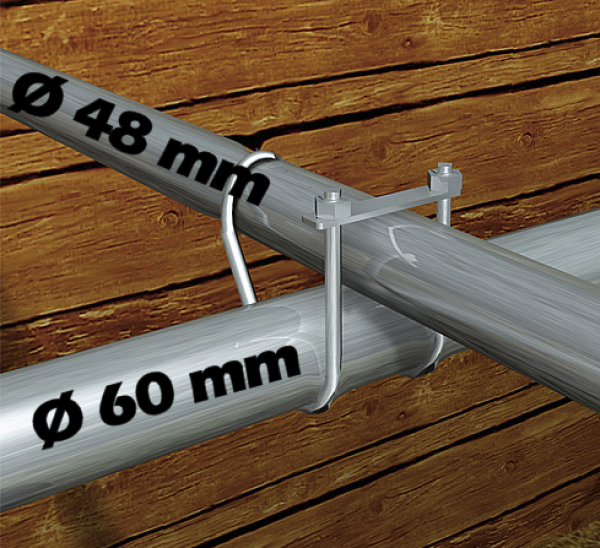 Der offene Kreuzbügel ist eine preiswerte Alternative um Rohre kreuzweise zu verschrauben. Bei Rohre ab 60 mm Ø ist eine Stabile Kreuzklemme zu empfehlen. Um die Suche nach der benötigten Größe zu erleichtern sind in der Tabelle die Maße mit mm und auch Zoll angegeben.
