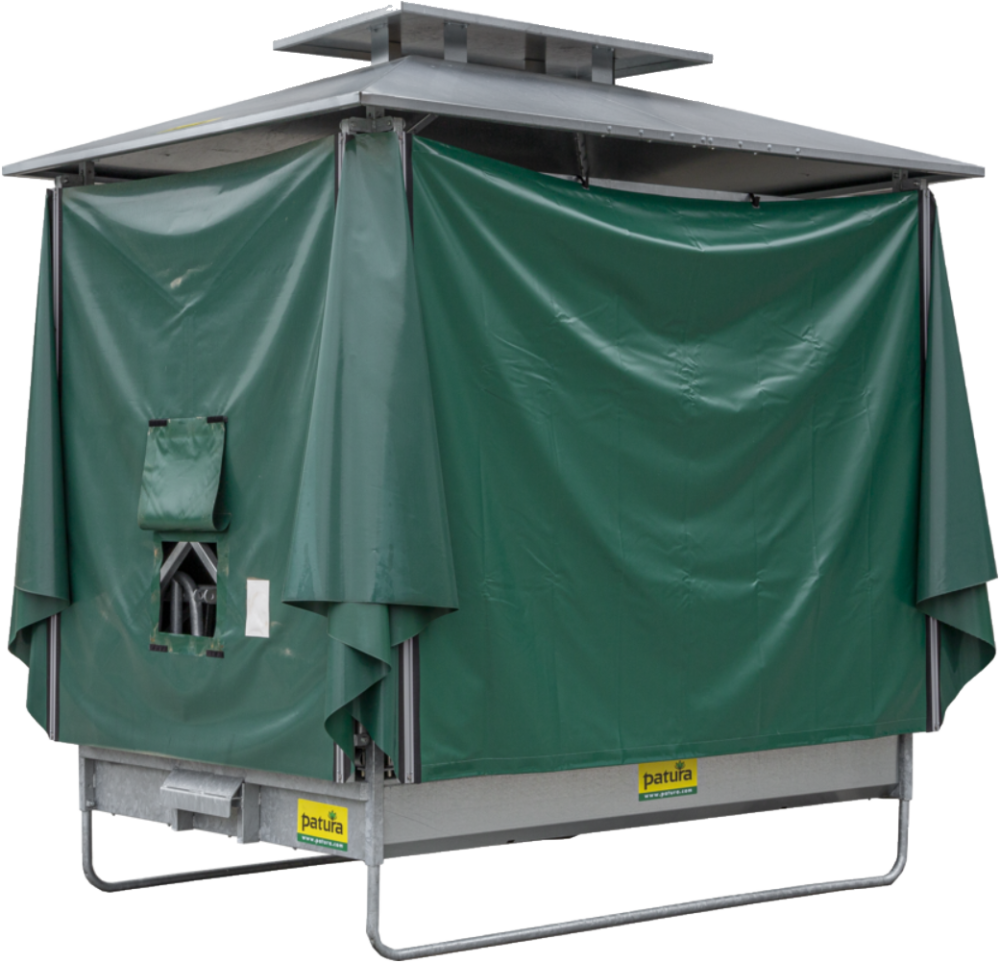 Für den problemlosen Transport der gesamten Raufe kann die gewohnte Dreipunktanhängung verwendet werden. Die Beschattungselemente können für Straßenfahrten oder für das Umsetzen von Weide zu Weide eingeklappt werden.