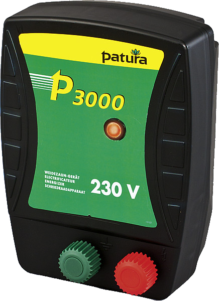 Das 230 V Gerät für mittellange Zäune mit Bewuchs für Rinder und Pferde; Kontrollanzeige für Gerätefunktion, inkl. Netzanschlusskabel