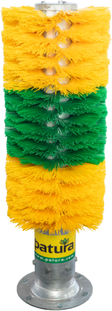 Die intensive Nutzung der Bürste sorgt bei den Tieren für ein erhöhtes Aktivitätslevel und hält das Fell sauber. Die einzelnen Bürstenscheiben sind einfach zu reinigen und auszuwechseln. Die Bürstenscheiben zeichnen sich durch eine hohe Lebensdauer aus. Sollte dennoch eine Scheibe kaputt gehen, kann diese einzeln ersetzt werden. Die Pfahlbürste ist ideal für Pferde geeignet und kann mittels Bodenplatte auf betonierten Untergrund aufgedübelt werden oder mit dem neuen Bodenbefestigungsset auf der Weide installiert werden.