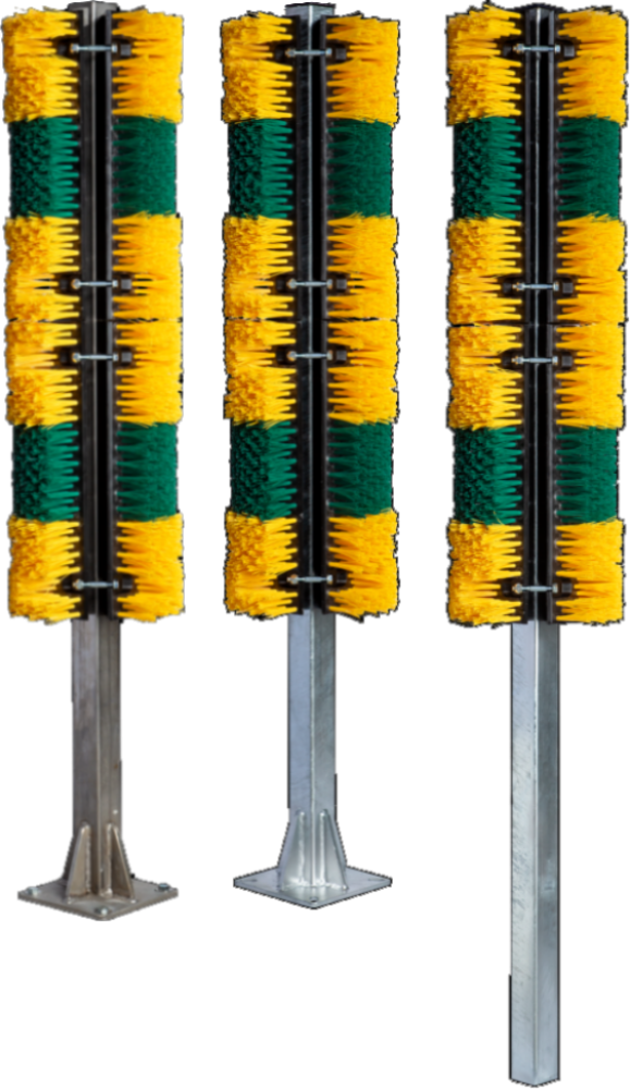 Die Pfahlbürste Midi100, inkl. Pfosten, wahlweise mit Bodenplatte aus Edelstahl, feuerverzinkt oder zum Einbetonieren.