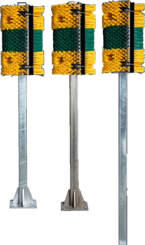 Die Pfahlbürste Midi 50, inkl. Pfosten, wahlweise mit Bodenplatte aus Edelstahl, feuerverzinkt oder zum Einbetonieren.