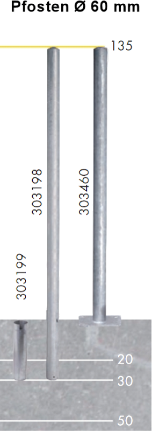 - Pfahl ohne Bodenplatte: 1,65 m (neu jetzt mit Verdrehsicherung)