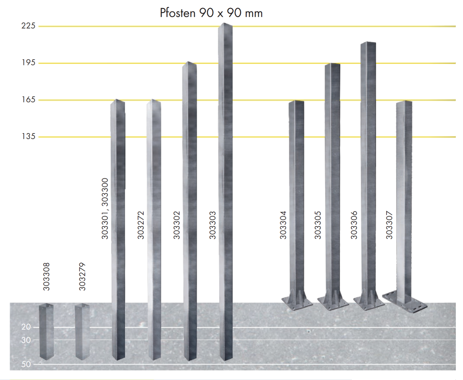 Der Pfosten 90 x 90 mm ist ein Quadratrohr und in verschiedenen Längen erhältlich. In der Auswahl haben Sie die Möglichkeit zwischen verschiedenen Längen und Ausführungen.