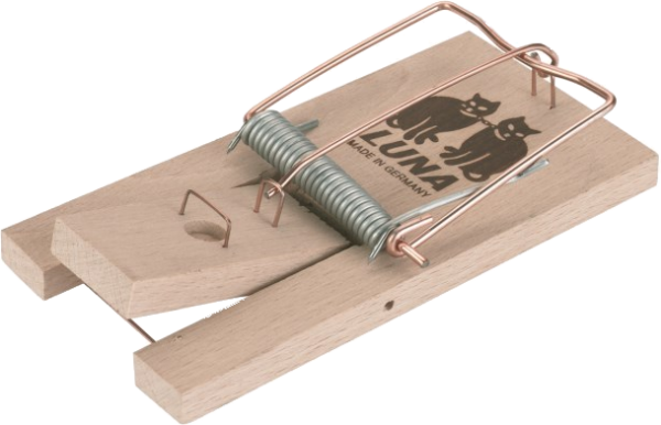 Rattenfalle Luna aus zertifiziertem Buchenholz mit Holz-Wippenmechanismus zum Auslösen der Falle