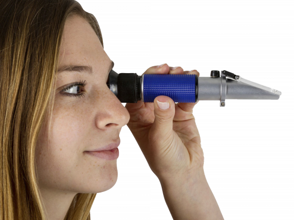 einfach wenige Tropfen des Kolostrums auf die Linse geben, Refraktrometer in Richtung Licht halten und den Wert (% Brix) ablesen. Der Brix-Wert kann einem Immunglobulingehalt zugeordnet werden.