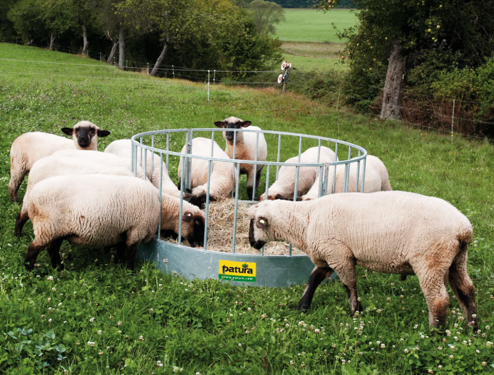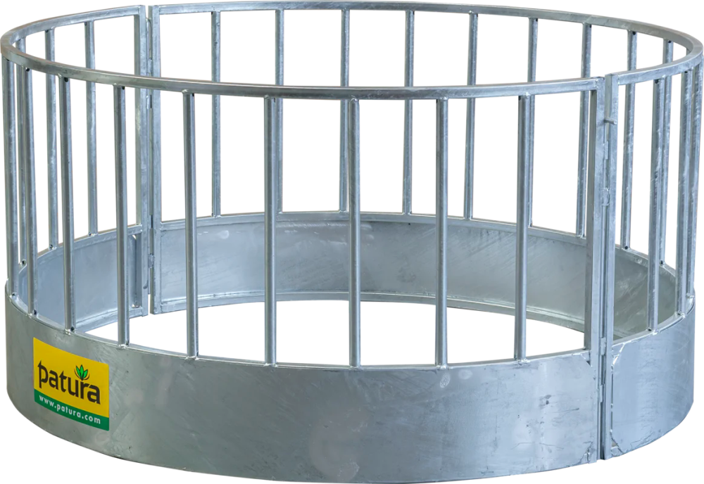 Die ideale Raufe für Schafe zur preiswerten Vorlage von Rundballen bis Ø 1,40 m. Der Ballen wird auf die flache Seite gelegt, die zweiteilige Raufe um den Ballen aufgestellt und mit 2 Verbindungsstangen zusammengebaut. Auf diese Weise kann der Ballen auch einfach per Hand an die gewünschte Stelle gerollt werden und ein Frontlader ist nicht zwingend notwendig. Die Raufe kann mithilfe von zwei separat erhältlichen Zwischenstücken (Ref. 373521) von 28 auf 34 Fressplätze erweitert werden.