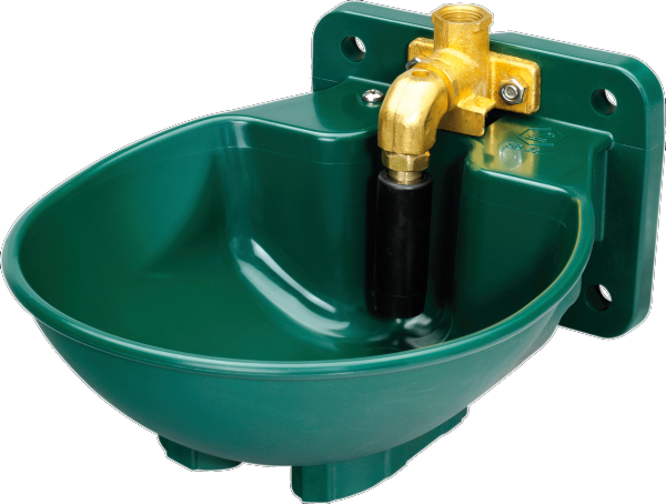 Das Tränkebecken SB 22 bietet einen 1/2" Anschluss und die Tränke SB 23 einen 3/4" Anschluss, sonst sind beide Tränken baugleich. Die Kunststofftränke mit Pendelventil ist ideal für Pferde und Rinder. Die extra große Tränkeschale aus verbisssicherem, robustem Kunststoff ist mit einer Heizkabelnut (für die Nachrüstung mit Heizkabel) ausgeführt. Leichtgängiges Pendelventil mit Wasserregulierschraube komplett aus Messing. Vereinfachte Reinigung durch herausnehmbaren Kunststoffstopfen in der Mitte der Tränkeschale.