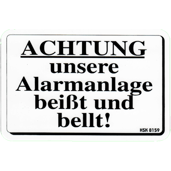 ACHTUNG unsere Alarmanlage beißt und bellt !