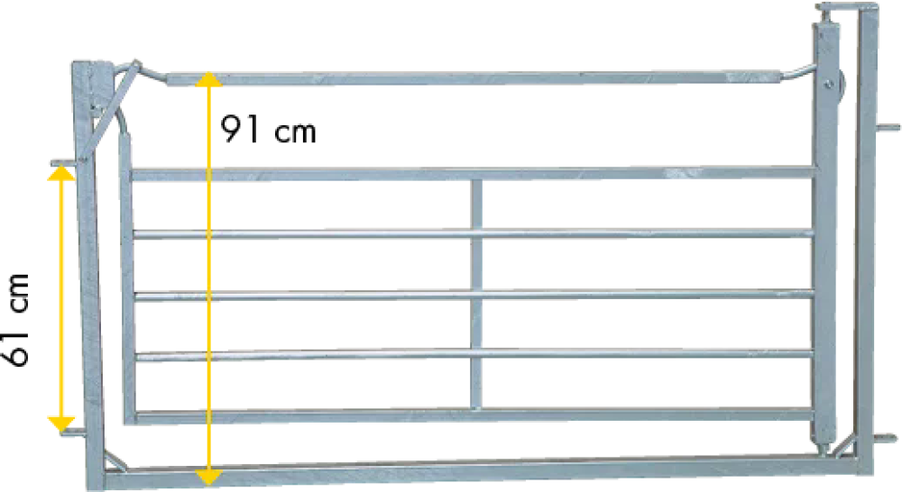 - Lässt sich durch den Drehpunkt schieben, so dass das Tor nie gegen die Herde zurückgeschwungen werden muss
