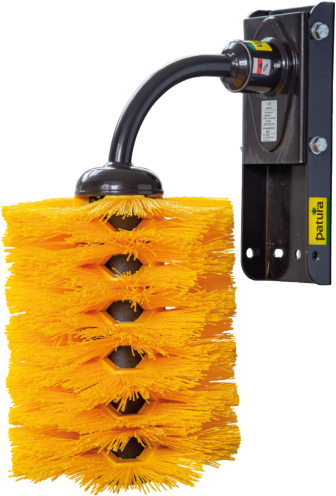 Die mechanischen Schwingbürstenmodelle von PATURA benötigen keinen Strom und sind leicht und sicher an jeder tragfähigen Wand oder Stütze zu montieren. Der Lieferumfang umfasst die Standardbefestigung, weitere Sonderbefestigungen sind auf Anfrage erhältlich. Durch die pendelnde Bewegung der Bürste können die Tiere wichtige Körperpartien erreichen und dort die Kratz- und Reinigungsintensität selbst bestimmen. Die intensive Nutzung der Bürste sorgt bei den Tieren für ein erhöhtes Aktivitätslevel und hält das Fell sauber. Aufgrund des geringen Rückschlags sind die Schwingbürstenmodelle auch für gemischte Gruppen von Kühen und Kälbern bzw. bei Pferden unbedenklich zu verwenden. Die einzelnen Bürstenscheiben sind einfach zu reinigen und auszuwechseln. Die Bürstenscheiben zeichnen sich durch eine hohe Lebensdauer aus. Sollte dennoch eine Scheibe kaputt gehen, kann diese einzeln ersetzt werden.