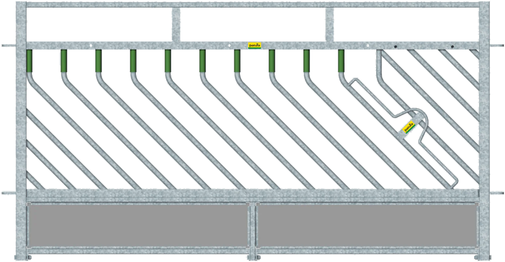 Die Selbstschließendes Fressgitter für Schafe haben im geschlossenen Zustand eine Halsweite von 7,5 cm, im geöffneten Zustand haben die Tiere 20 cm Platz. So können die Mutterschafe Heu, Silage oder Kraftfutter gut erreichen, während im geschlossenen Zustand verhindert wird, das Lämmer über das Fressgitter die Bucht verlassen. Um den Lautstärkepegel gering und somit den Komfort im Stall zu erhalten, sind die Fressgitter standardmäßig mit Gummipuffer ausgestattet. Die widerstandsfähige Kunststoffplatte im unteren Berreich des selbstschließenden Fressgitters sorgt nicht nur für eine verlängerte Lebensdauer, sondern ist auch pflegeleicht und witterungsbeständig und sorgt für saubere Trennung zwischen Futtertisch und Standfläche.