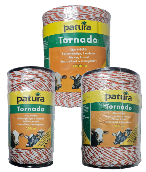 Die Tornado Litze von Patura ist für Zäune mit einer Zaunlänge bis 5.000 m zu empfehlen. Je höher der Widerstand desto geringer die Leitfähigkeit.