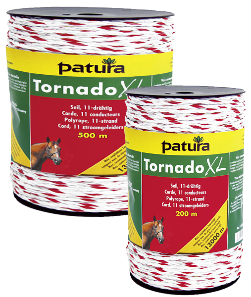 Das Tornado XL Seil 6 mm von Patura ist für Zäune mit einer Zaunlänge bis 13.000 m zu empfehlen. Je höher der Widerstand desto geringer die Leitfähigkeit.