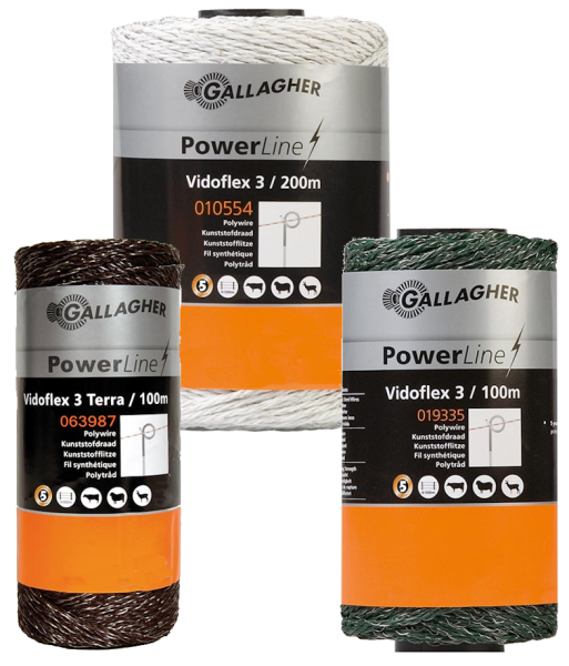 Für kurze Mobilzäune empfehlen wir Ihnen unsere Kunststofflitze Vidoflex 3. 18 Kunststoff-Fasern und 6 Niroleiter sorgen für gute Leitfähigkeit und die bekannte, ausgesprochen hohe Langlebigkeit.
