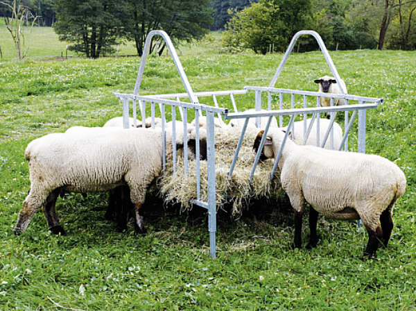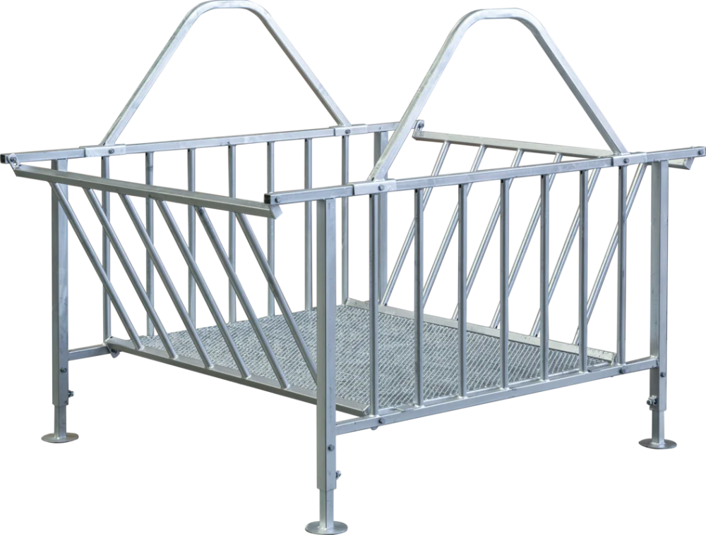 Das Standardmodell zur einfachen Futtervorlage verringert die Futterverluste auf der Weide und ermöglicht eine einfache Beschickung der Raufe mit dem Frontlader. Dank der großzügigen Maße ist die Raufe für Heuballen von bis zu 1,80 m Ø geeignet. Der besondere Vorteil dieser Raufe: das Futter liegt nicht auf dem Boden, durch den Gitterrost fallen kleinere Staubpartikel durch und verhindern die Ansammlung von Futterresten.