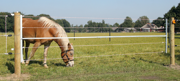 Das Weidetor mit Stromführung ist in der Breite von 2,5 m bis 4,5 m verstellbar. Verzinktes Weidetor inkl. isolierter Befestigungsschienen und Griffe. In 5 Ebenen können Stahldraht, EquiFence, Breitband oder Cord eingespannt werden und sorgen so für eine Stromführung, optisch angepaßt an Ihren Zaun. Lieferung ohne Stromleiter.