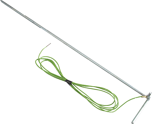 Der Zusatz-Erdstab 0,65 m ist speziell für kleine Batteriegeräte; feuerverzinkt mit Griff zum leichten Herausziehen und 3,0 m Kabel mit Stiftanschluss.